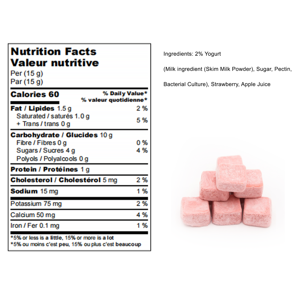 Made with real BC yogurt, these freeze-dried cubes retain probiotics and up to 97% of nutrients, promoting digestive health while offering a delicious, healthy snack.