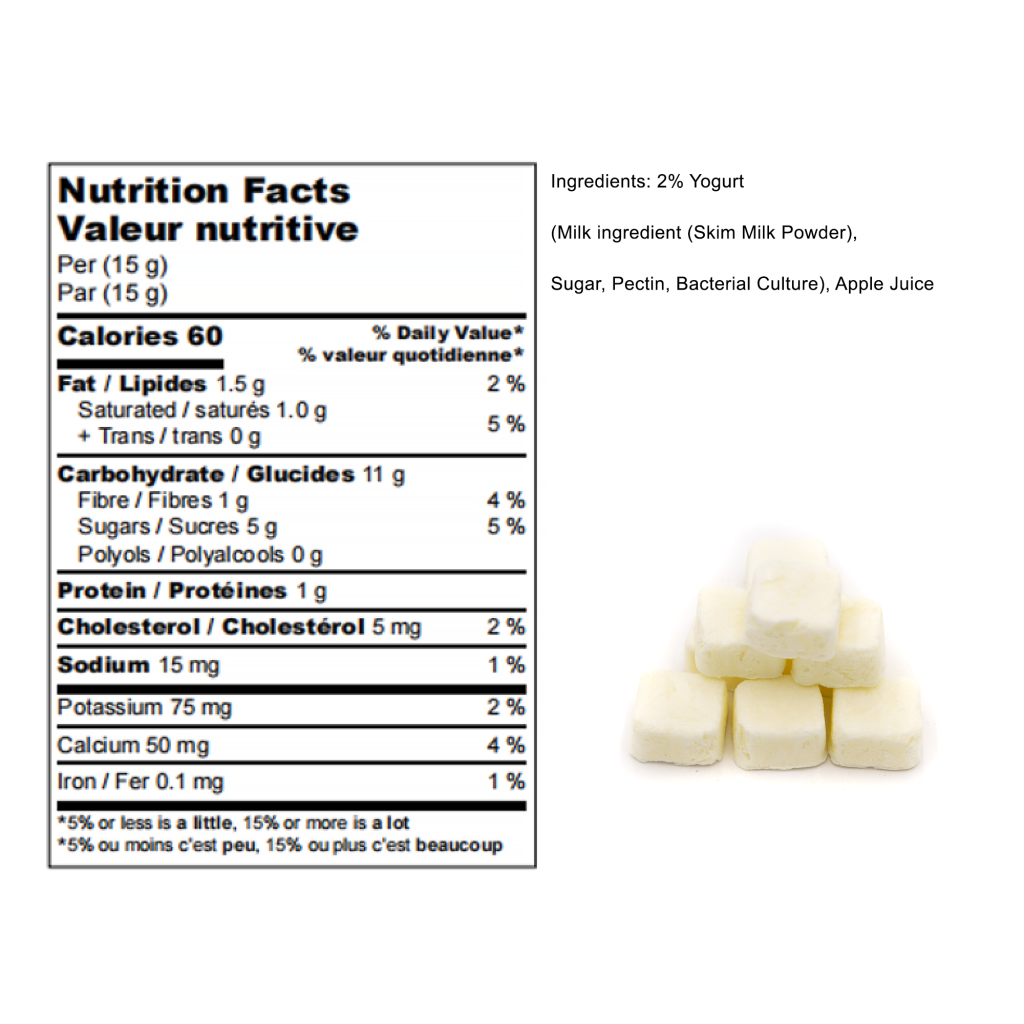 Made with real BC yogurt, these freeze-dried cubes retain probiotics and up to 97% of nutrients, promoting digestive health while offering a delicious, healthy snack.
